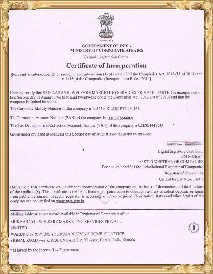 Srikaarayil is a business group operating in the field of welfare marketing services.
